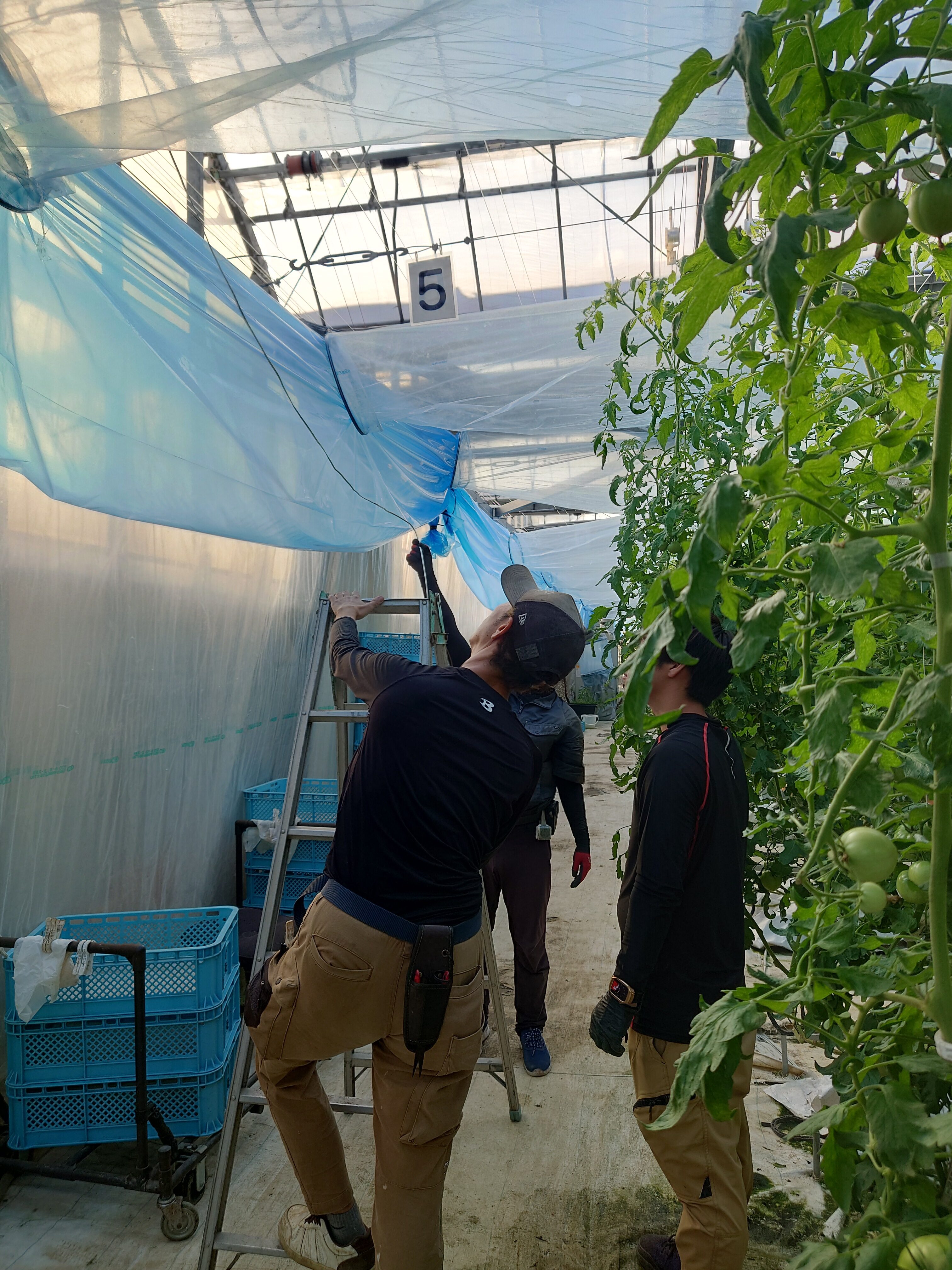 ハウス内が低温になるとトマトの生育はもとより、花粉が出なくなり蜂での交配が難しくなってしまいます。